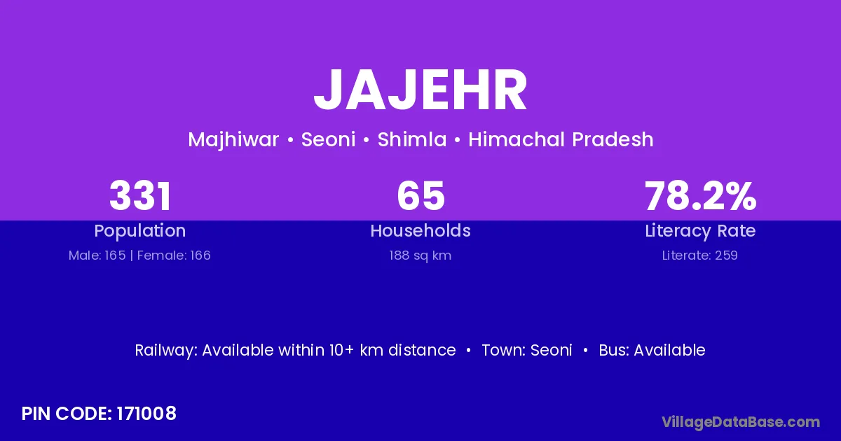 Seoni is the nearest town to Jajehr village for major economic activities