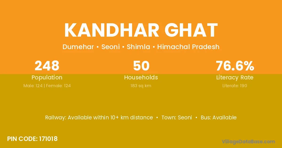 Kandhar Ghat village has a total population of 248 people, of which 124 are males and 124 are females.