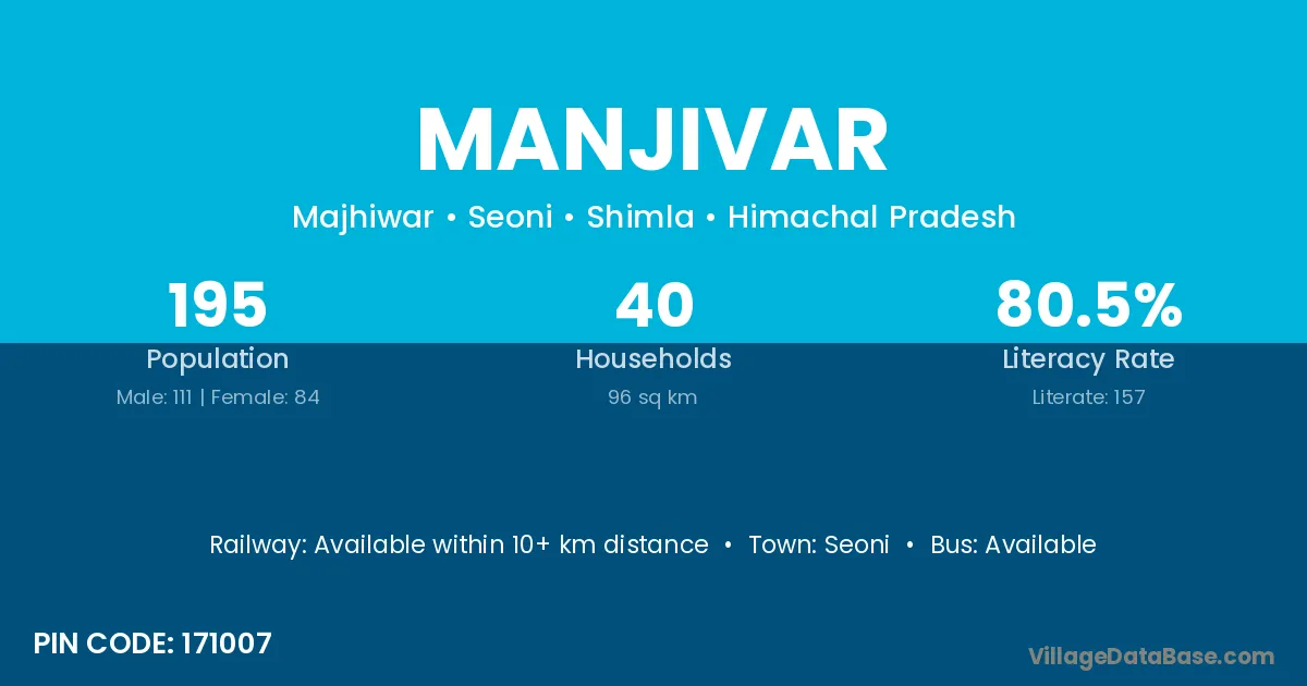Manjivar village has a total population of 195 people, of which 111 are males and 84 are females.