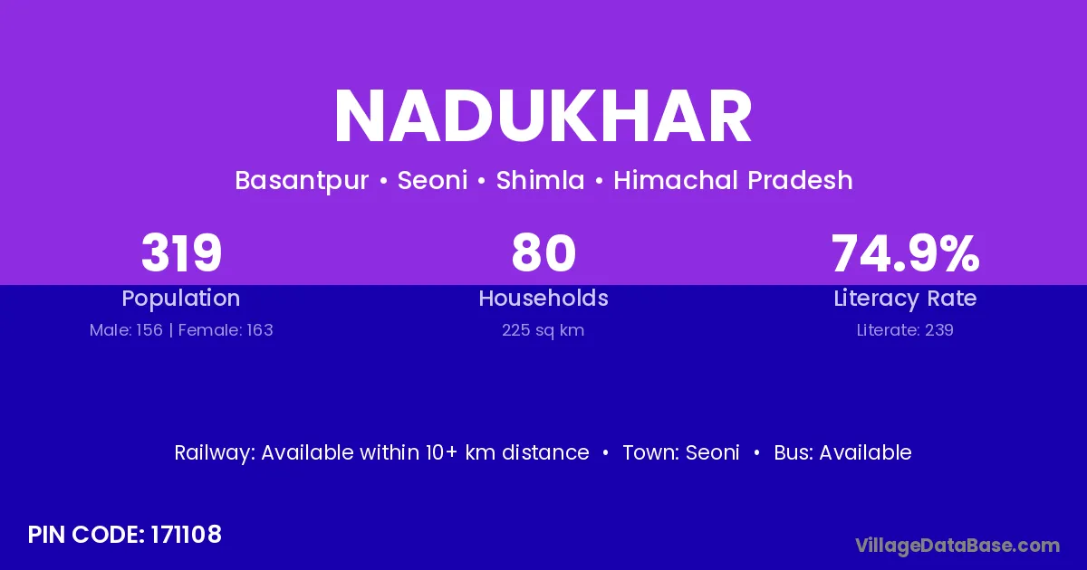 Nadukhar village is located in the Seoni Tehsil of the Shimla district in Himachal Pradesh .