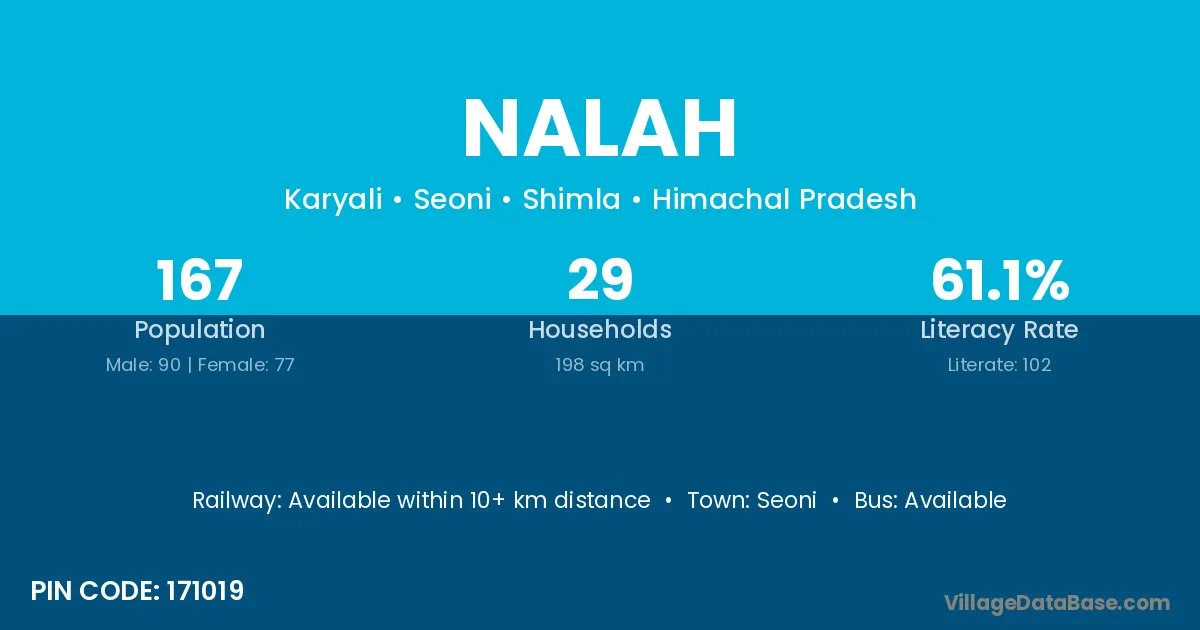 According to Census 2011 information, the village code of Nalah village is 171019.