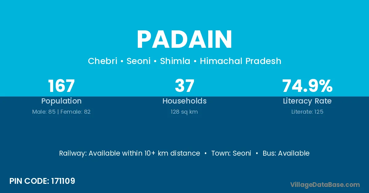 Padain village has a total population of 167 people, of which 85 are males and 82 are females.