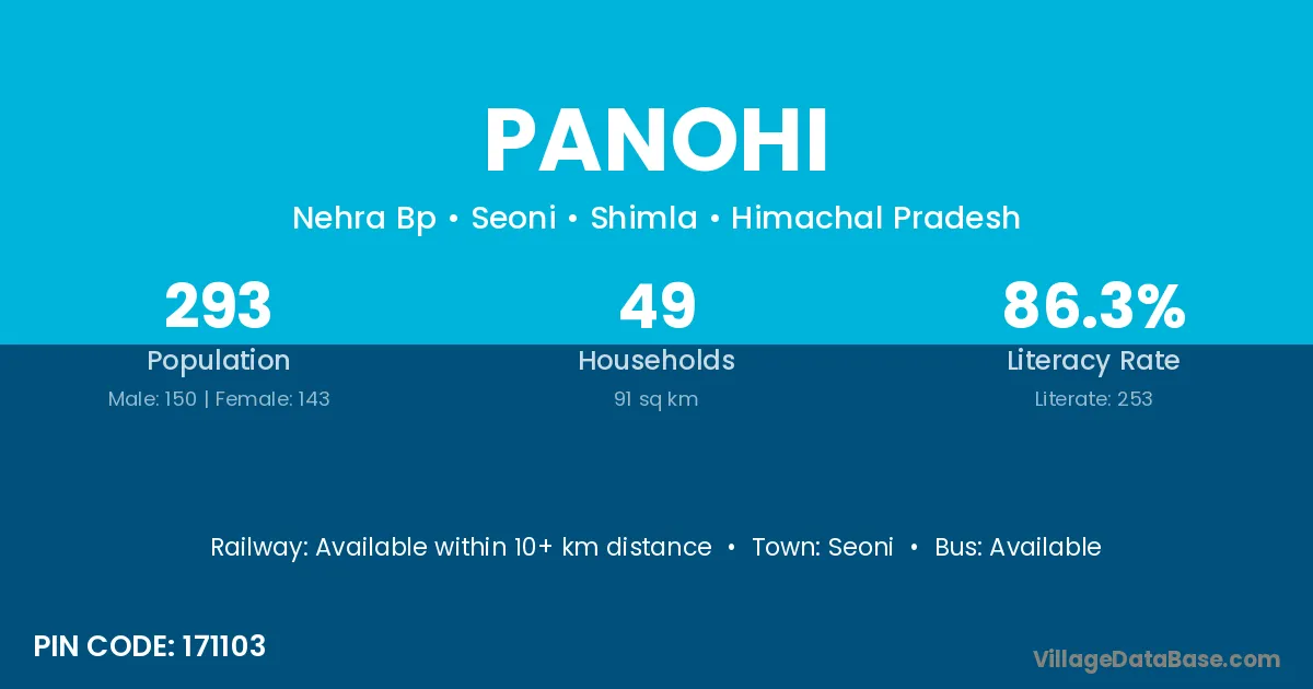 Seoni is the nearest town to Panohi village for major economic activities