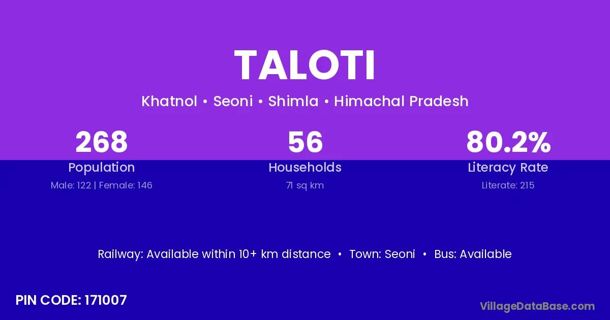 Taloti village is located in the Seoni Tehsil of the Shimla district in Himachal Pradesh .