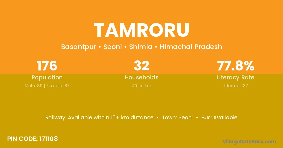 Tamroru village is located in the Seoni Tehsil of the Shimla district in Himachal Pradesh .