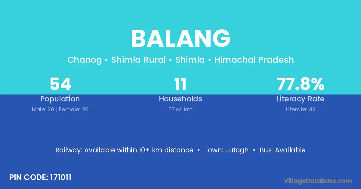 Balang village is located in the Shimla Rural Tehsil of the Shimla district in Himachal Pradesh .