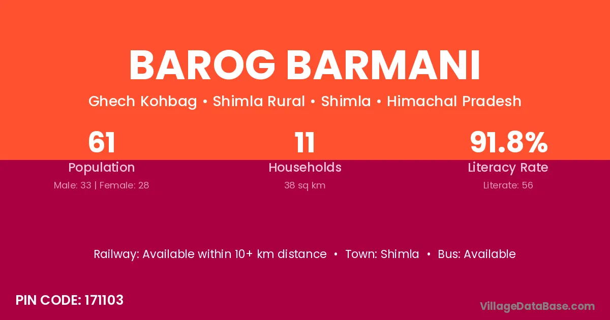 Shimla is the nearest town to Barog Barmani village for major economic activities
