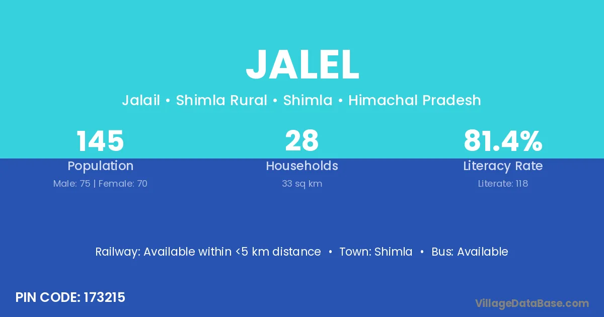 Jalel village has a total population of 145 people, of which 75 are males and 70 are females.