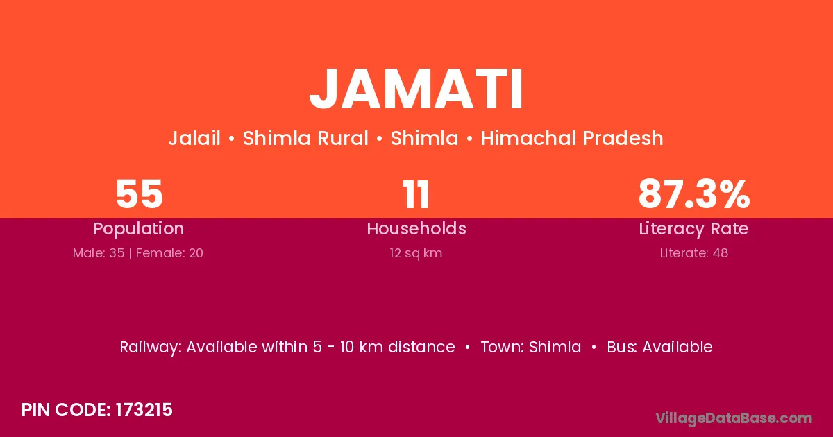Jamati village has a total population of 55 people, of which 35 are males and 20 are females.
