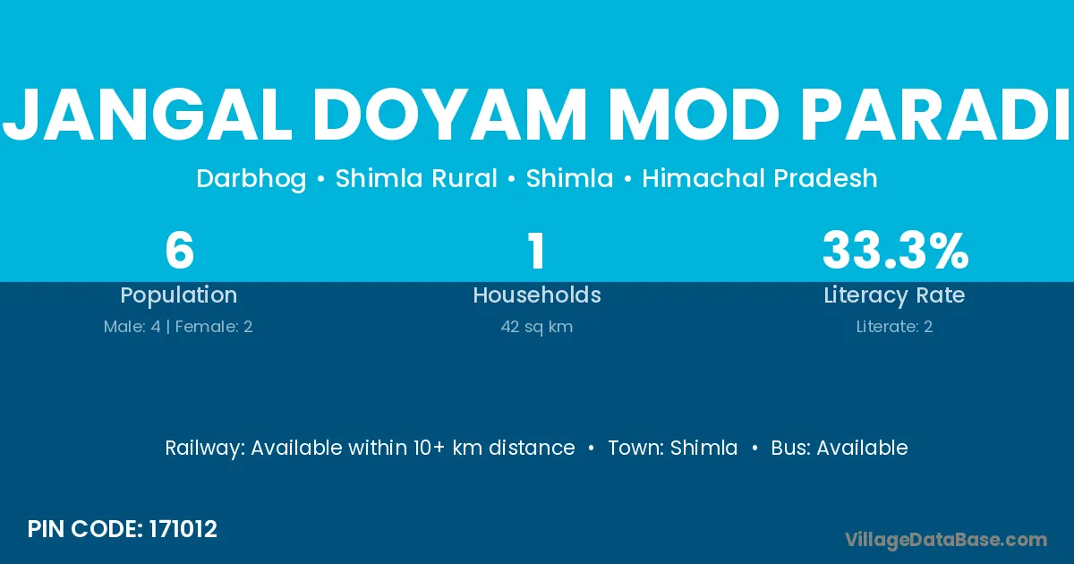 Jangal Doyam Mod Paradi village is located in the Shimla Rural Tehsil of the Shimla district in Himachal Pradesh .