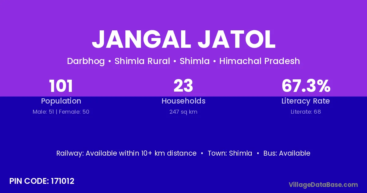 Jangal Jatol village is located in the Shimla Rural Tehsil of the Shimla district in Himachal Pradesh .