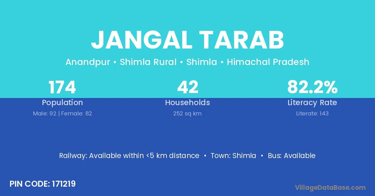 Shimla is the nearest town to Jangal Tarab village for major economic activities