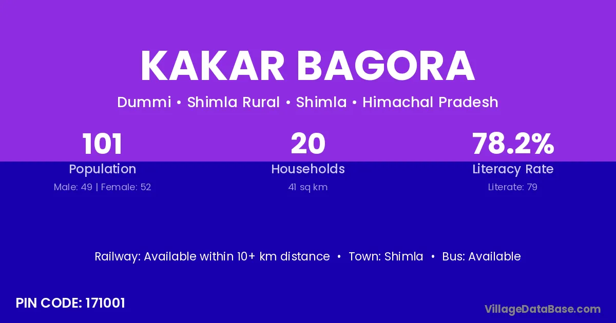 Shimla is the nearest town to Kakar Bagora village for major economic activities
