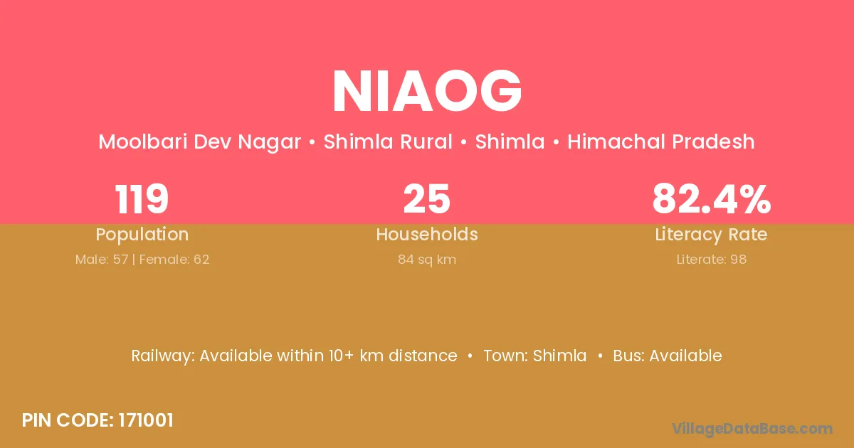 Shimla is the nearest town to Niaog village for major economic activities