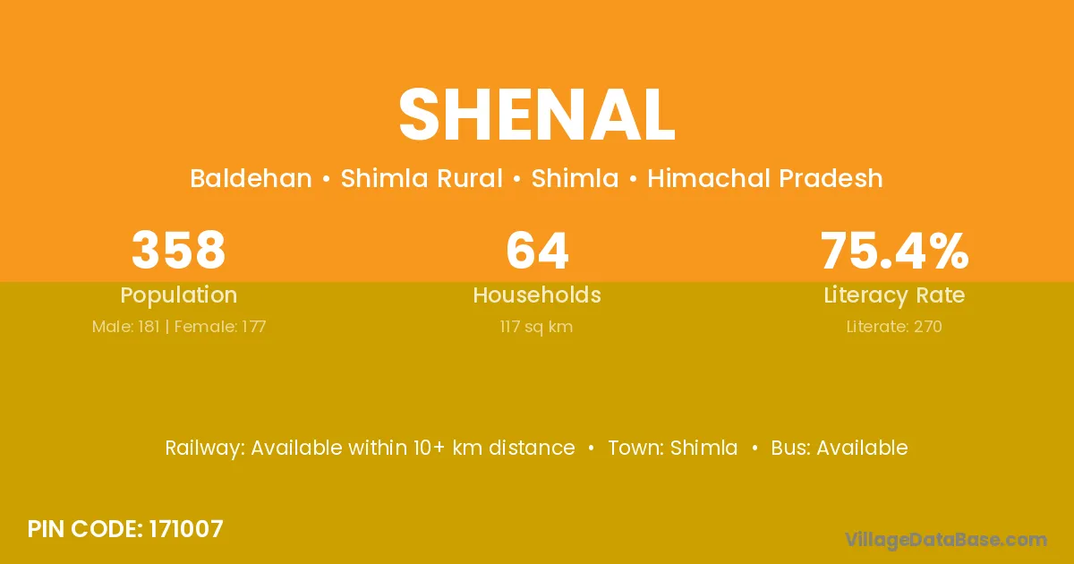 Shenal village has a total population of 358 people, of which 181 are males and 177 are females.