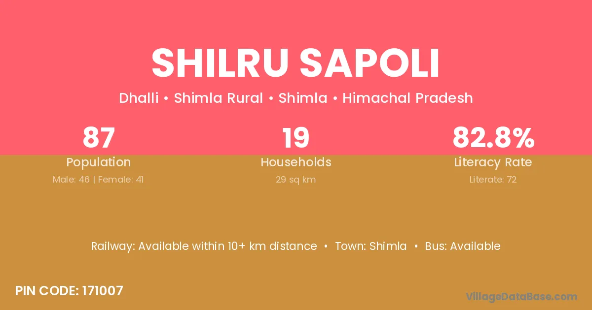 Shimla is the nearest town to Shilru Sapoli village for major economic activities