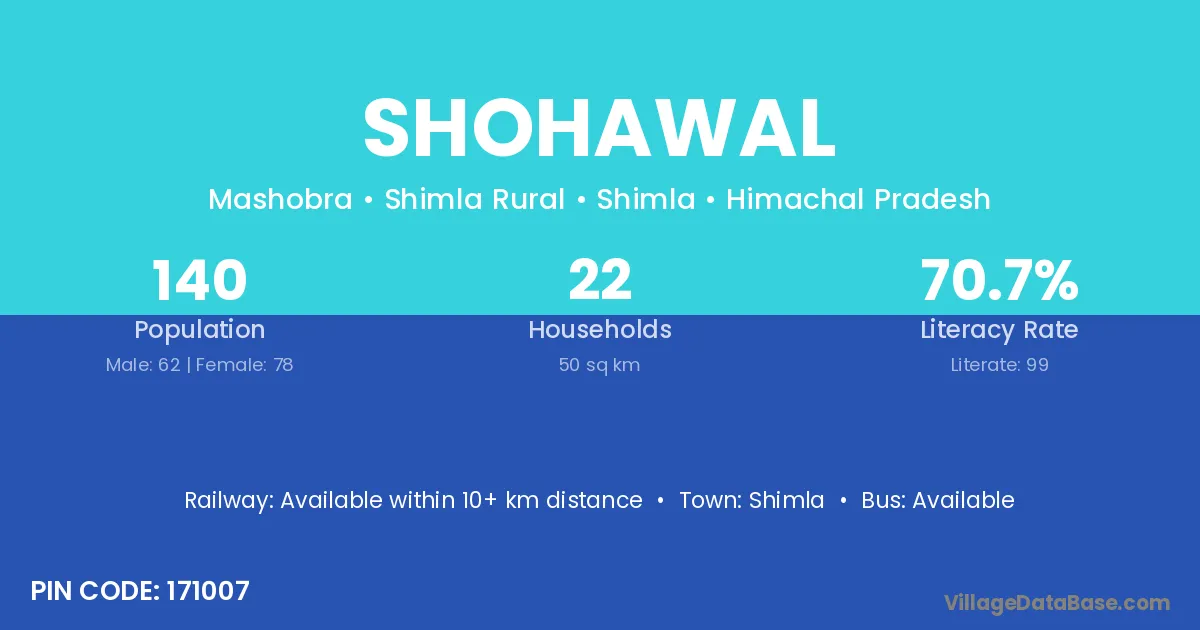 Shohawal village has a total population of 140 people, of which 62 are males and 78 are females.