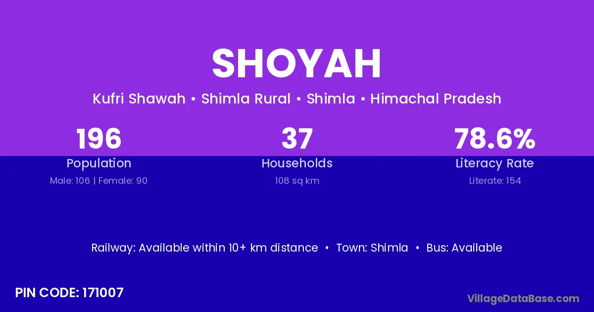 Shimla is the nearest town to Shoyah village for major economic activities