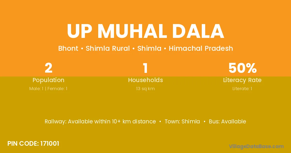 Up Muhal Dala village has a total population of 2 people, of which 1 are males and 1 are females.