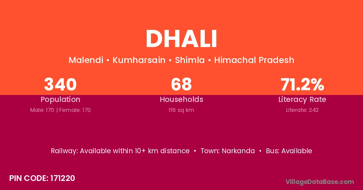 According to Census 2011 information, the village code of Dhali village is 171201.