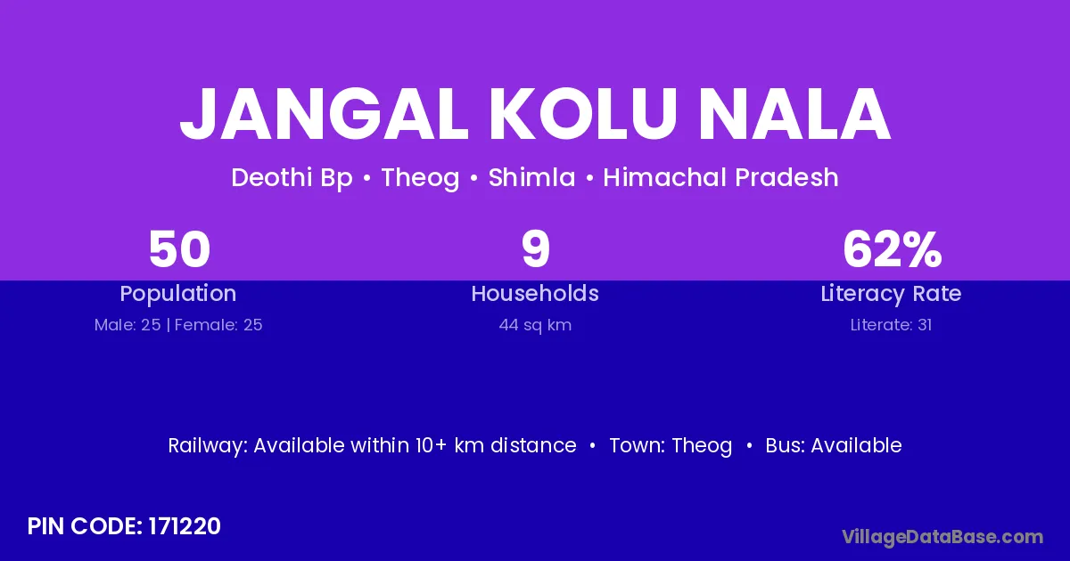 Theog is the nearest town to Jangal Kolu Nala village for major economic activities