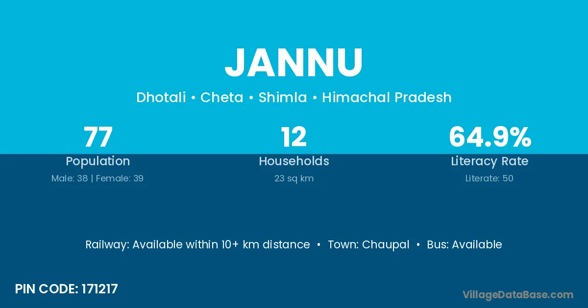 According to Census 2011 information, the village code of Jannu village is 171201.