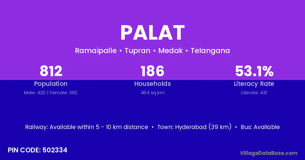 The literacy rate of Palat village is 56.00%. Male literacy stands at 44.44% and female literacy at 62.50%.