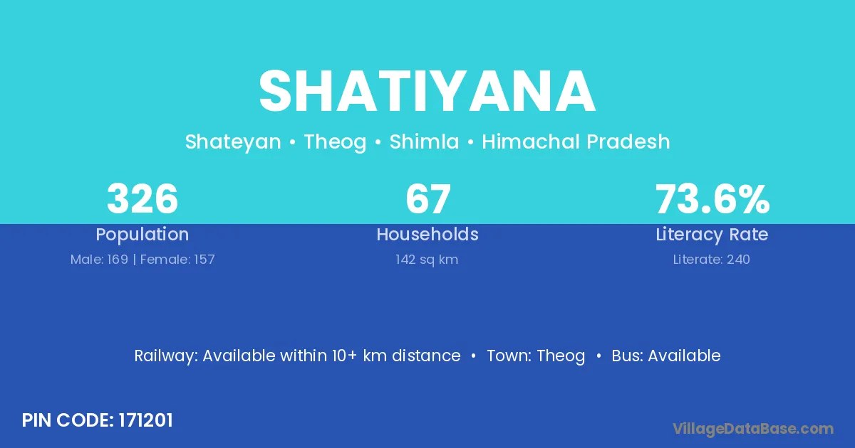 Shatiyana village has a total population of 326 people, of which 169 are males and 157 are females.