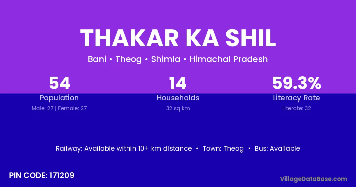 Theog is the nearest town to Thakar Ka Shil village for major economic activities