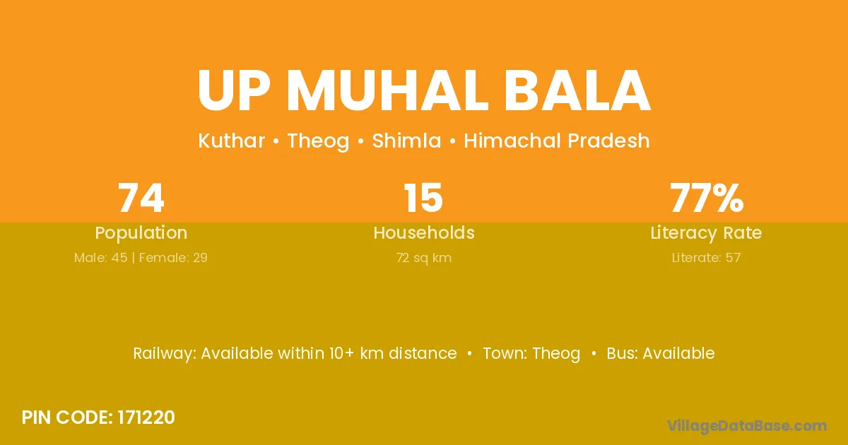 Theog is the nearest town to Up Muhal Bala village for major economic activities
