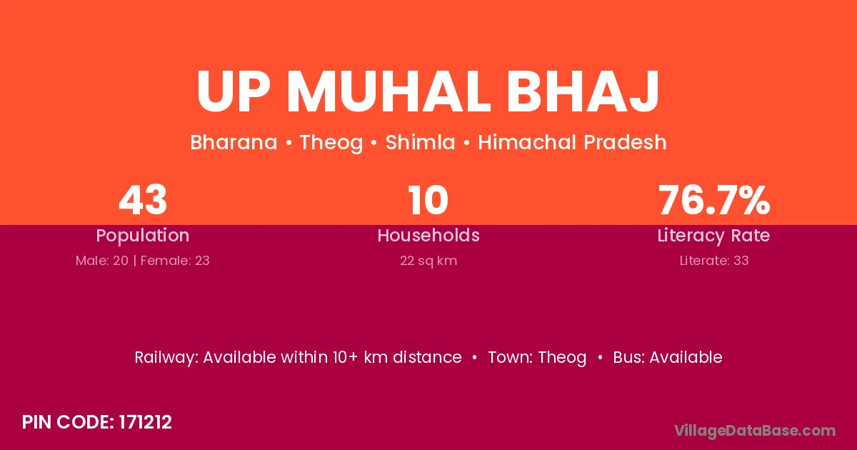Up Muhal Bhaj village has a total population of 43 people, of which 20 are males and 23 are females.