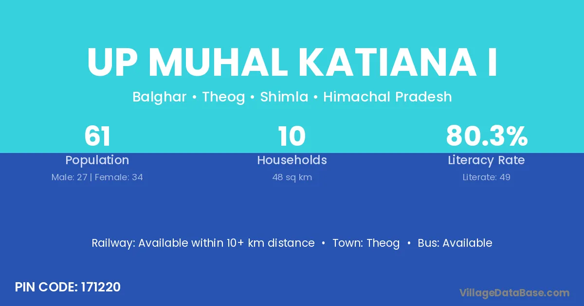 Theog is the nearest town to Up Muhal Katiana I village for major economic activities