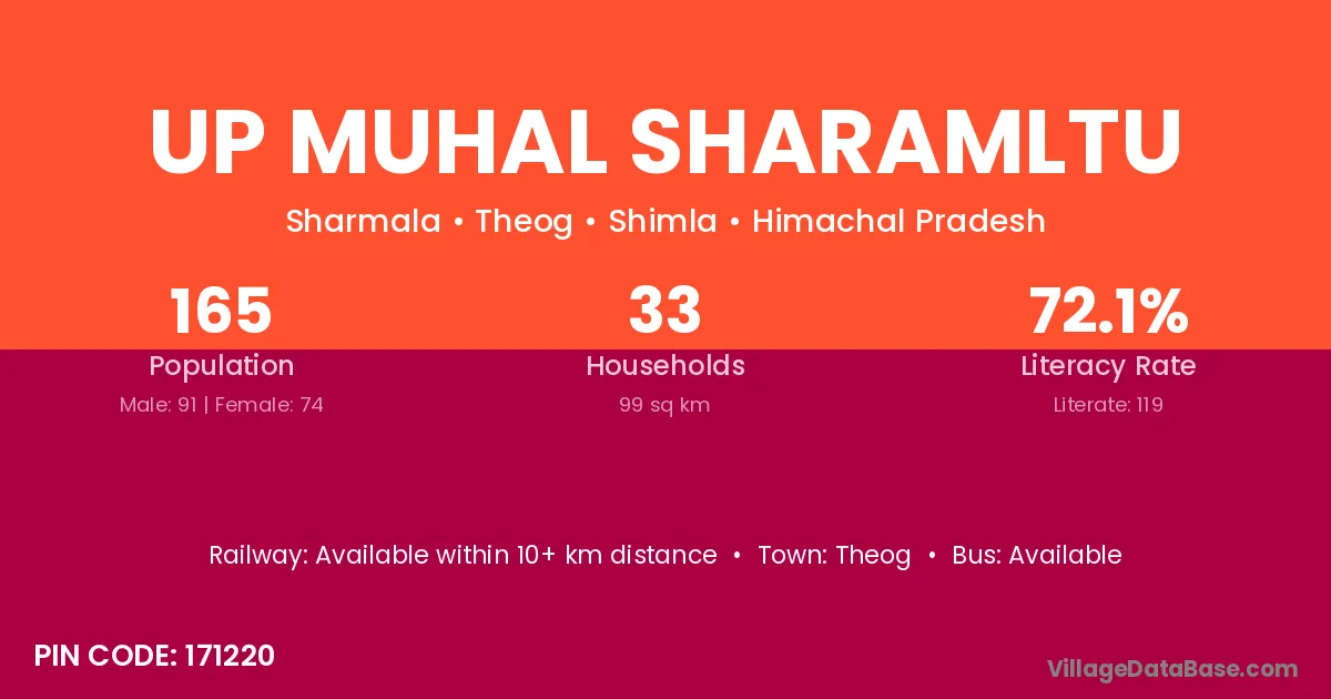 Theog is the nearest town to Up Muhal Sharamltu village for major economic activities