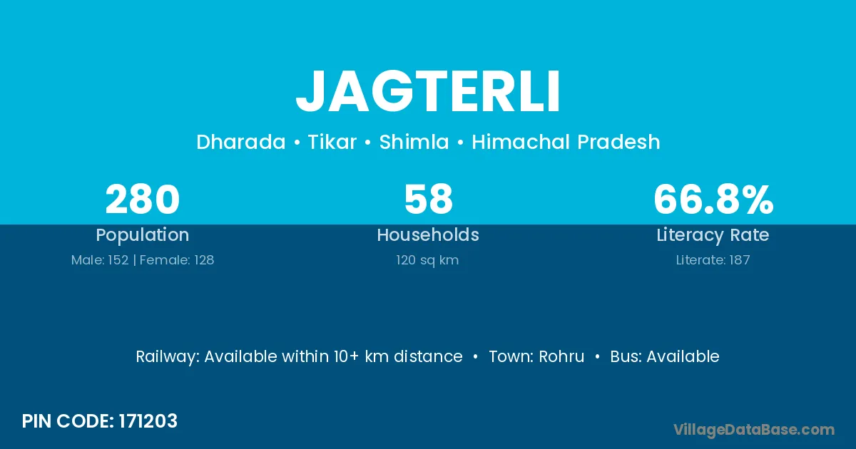 Jagterli village is located in the Tikar Tehsil of the Shimla district in Himachal Pradesh .