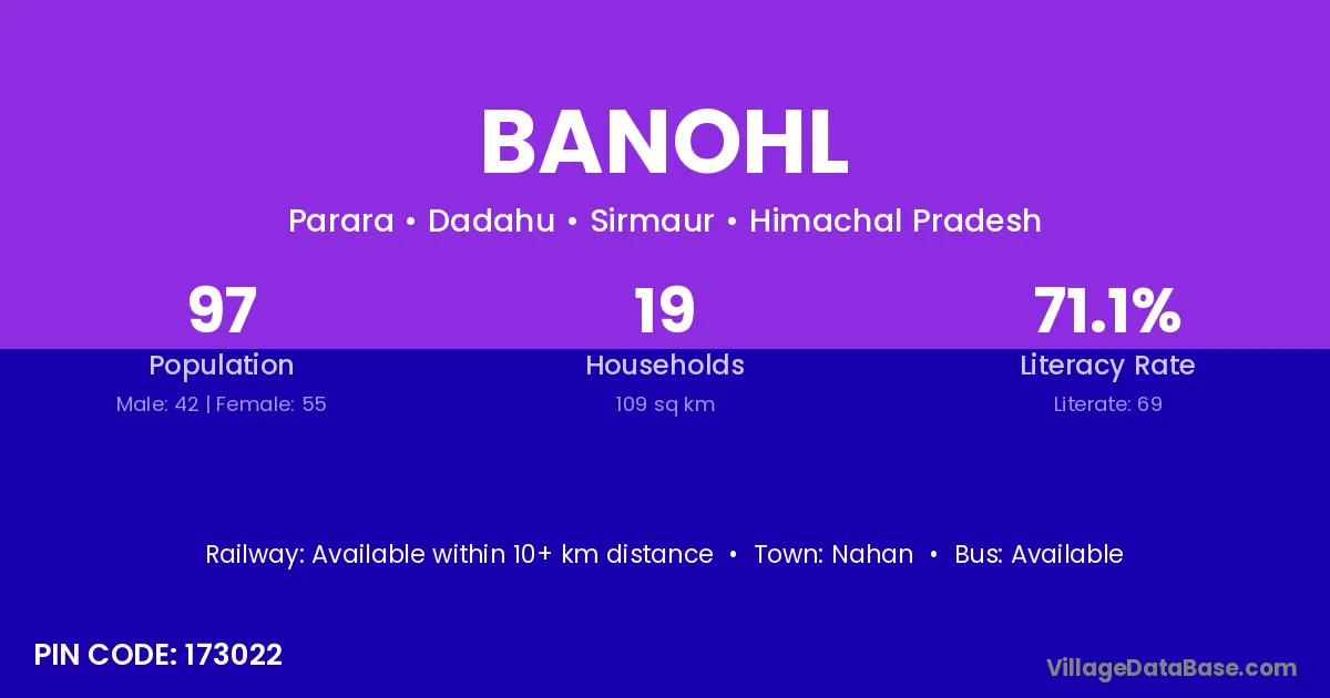 According to Census 2011 information, the village code of Banohl village is 173022.