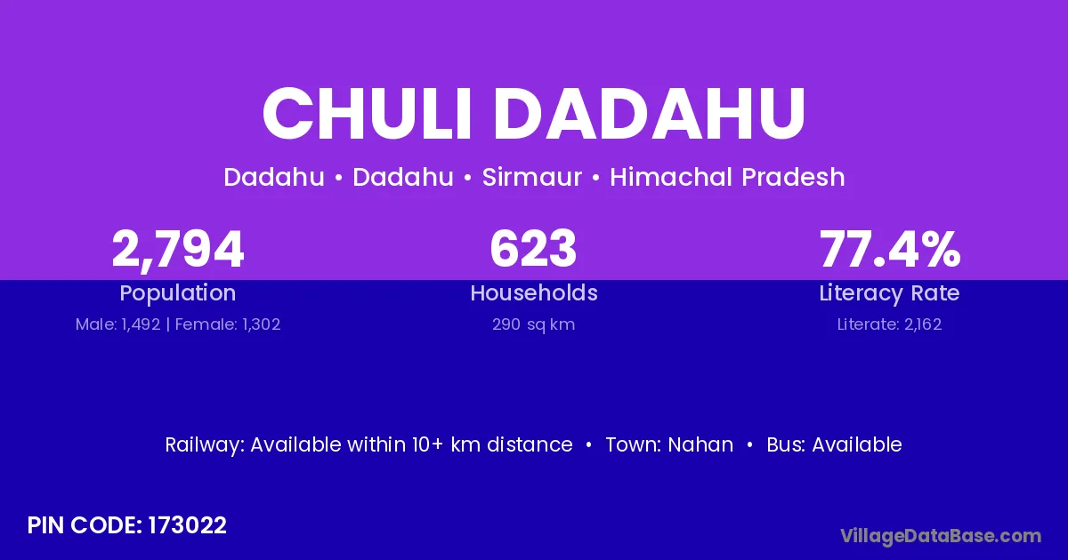 Nahan is the nearest town to Chuli Dadahu village for major economic activities