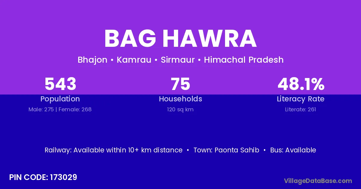 Paonta Sahib is the nearest town to Bag Hawra village for major economic activities