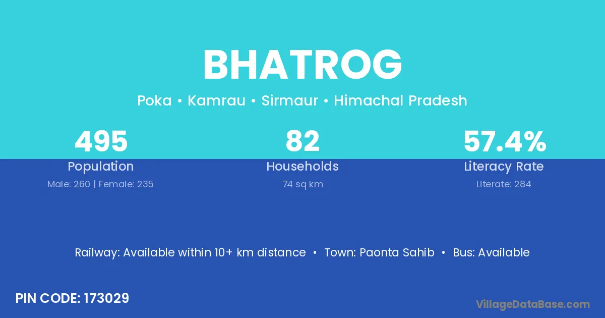 Paonta Sahib is the nearest town to Bhatrog village for major economic activities