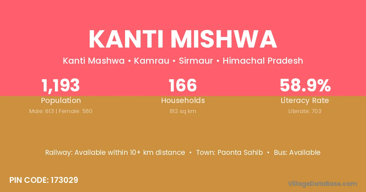 Paonta Sahib is the nearest town to Kanti Mishwa village for major economic activities