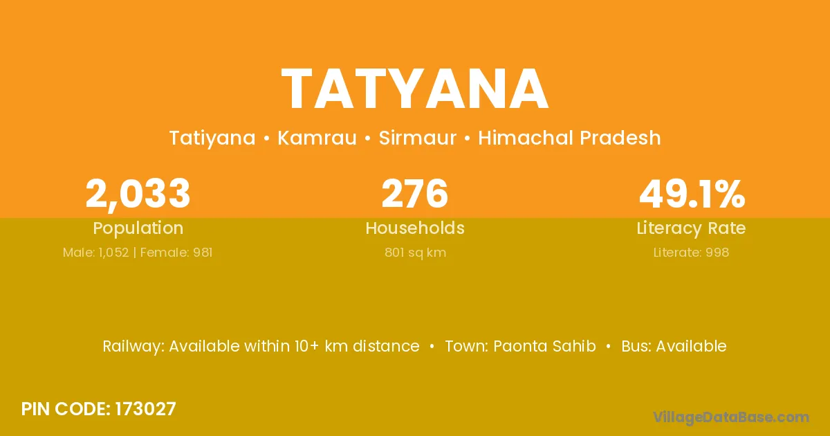 Paonta Sahib is the nearest town to Tatyana village for major economic activities