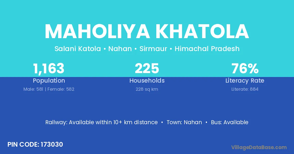 Nahan is the nearest town to Maholiya Khatola village for major economic activities