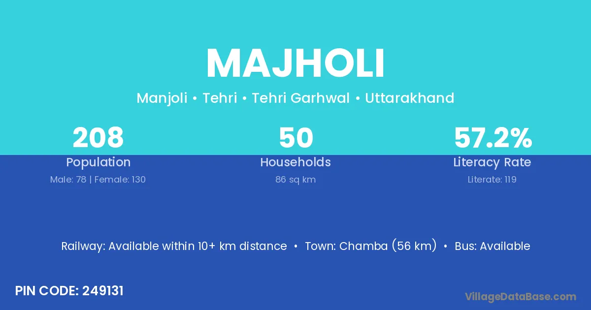 According to Census 2011 information, the village code of Majholi village is 173001.