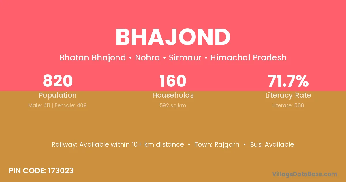 Bhajond village has a total population of 820 people, of which 411 are males and 409 are females.