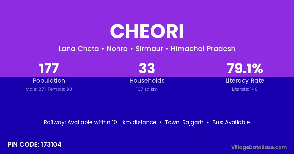 According to Census 2011 information, the village code of Cheori village is 173104.