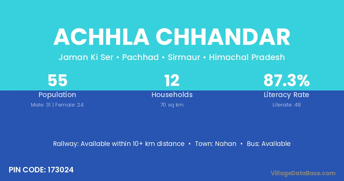 Achhla Chhandar village has a total population of 55 people, of which 31 are males and 24 are females.