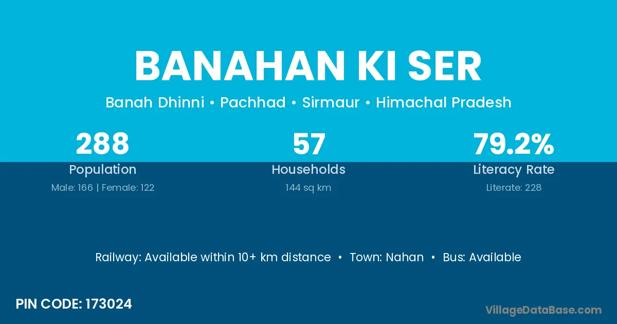 Nahan is the nearest town to Banahan Ki Ser village for major economic activities