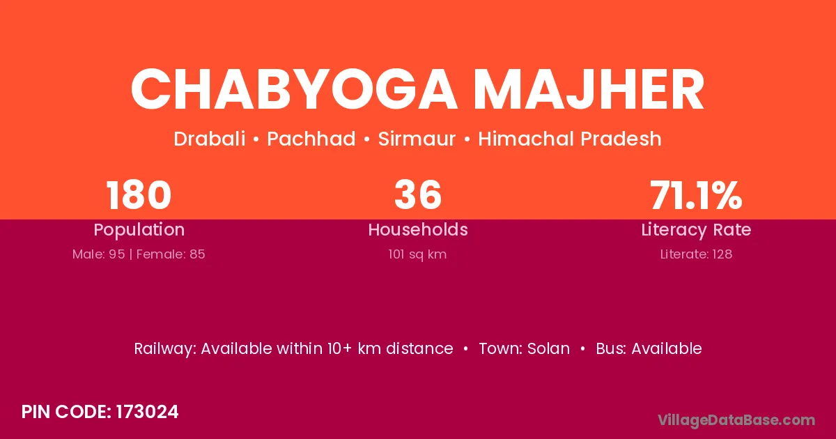 Solan is the nearest town to Chabyoga Majher village for major economic activities
