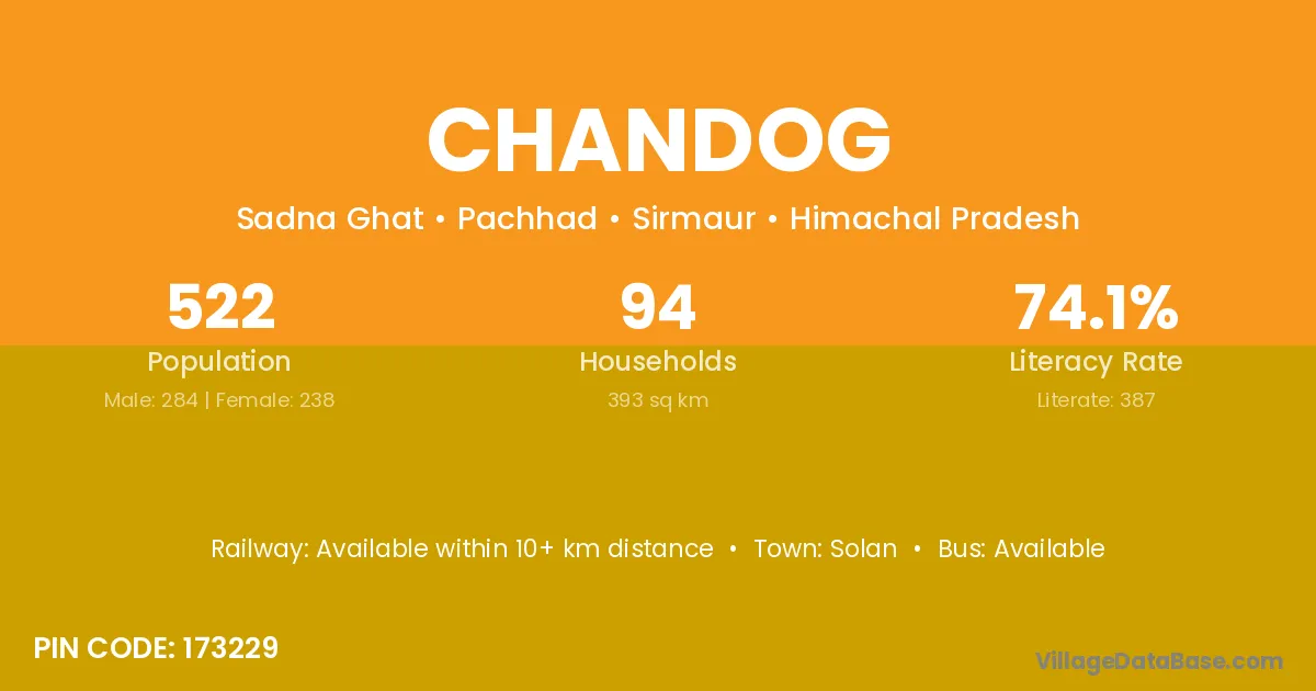 According to Census 2011 information, the village code of Chandog village is 173229.