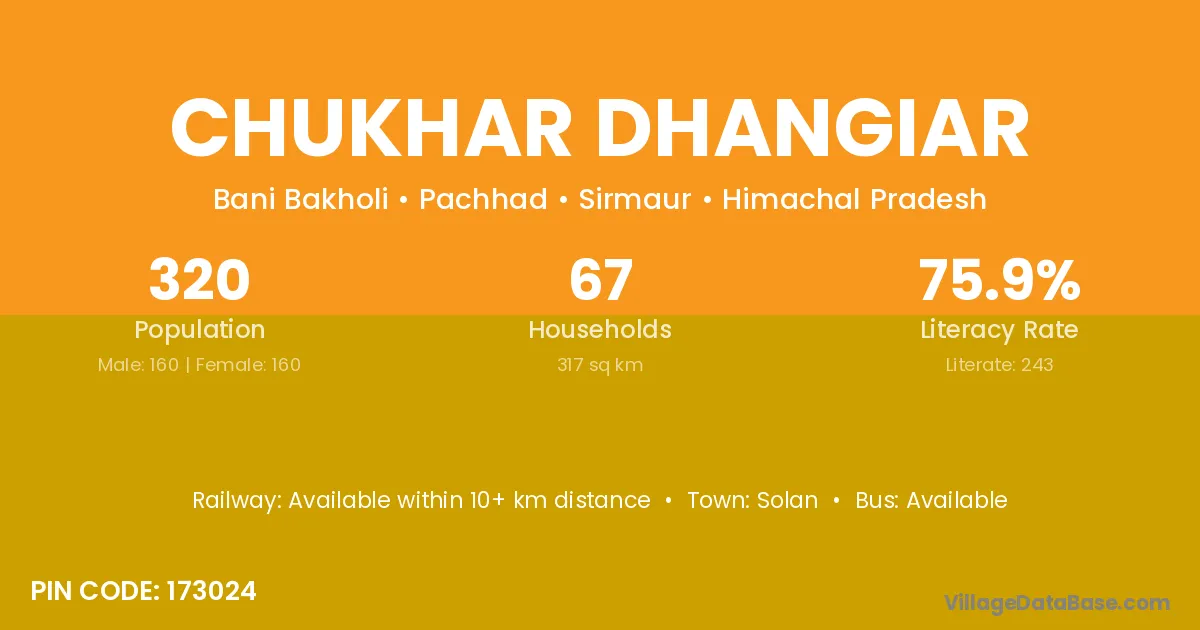 Solan is the nearest town to Chukhar Dhangiar village for major economic activities