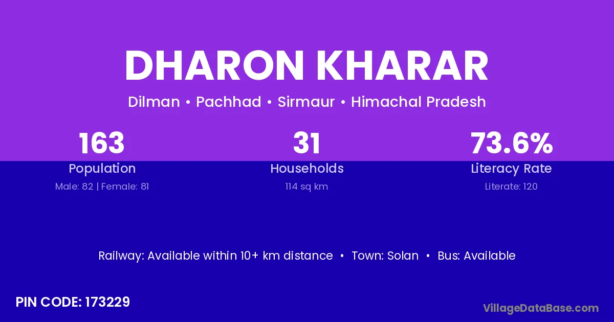 Solan is the nearest town to Dharon Kharar village for major economic activities
